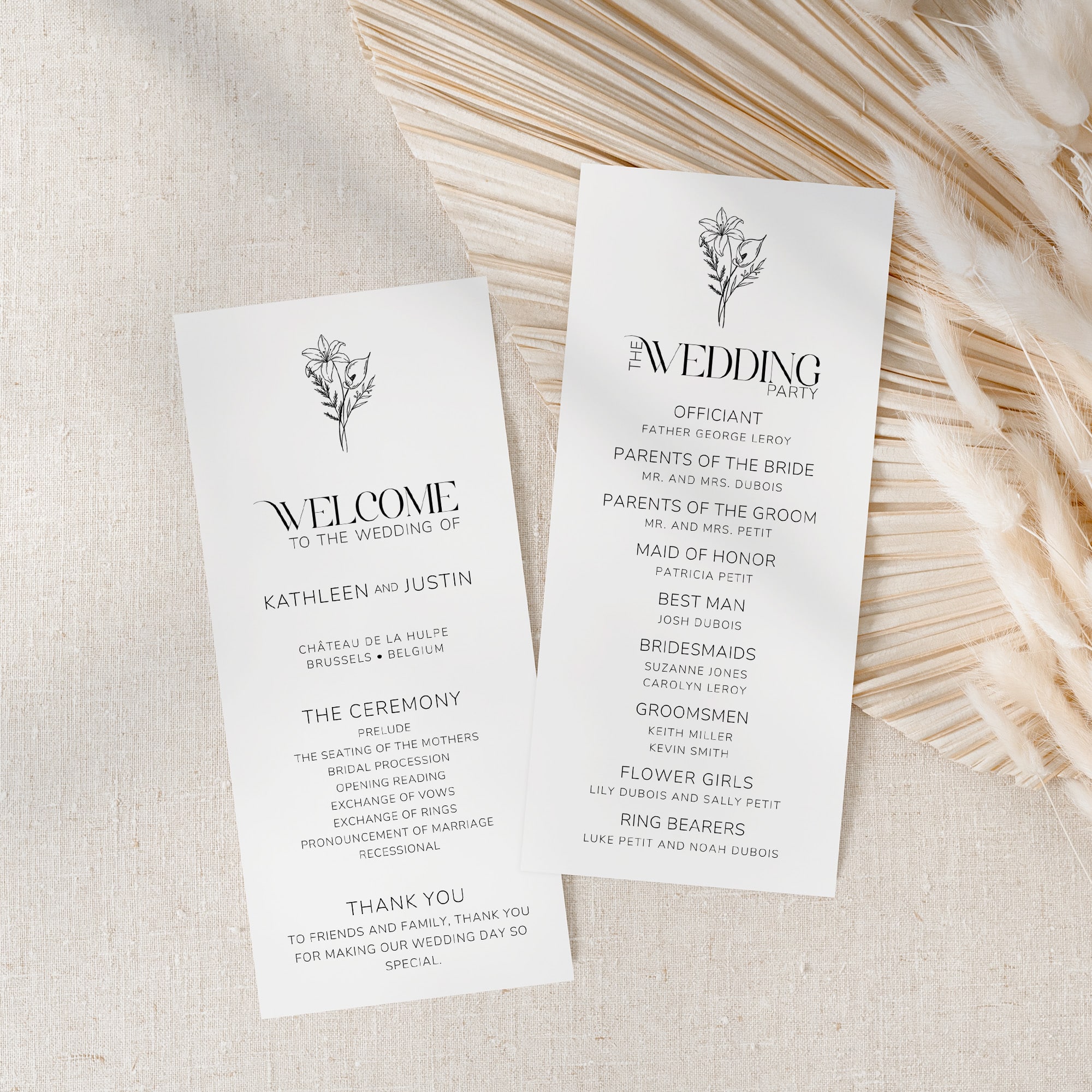 Wedding Program – 4" x 9" (Printed Double-Sided)