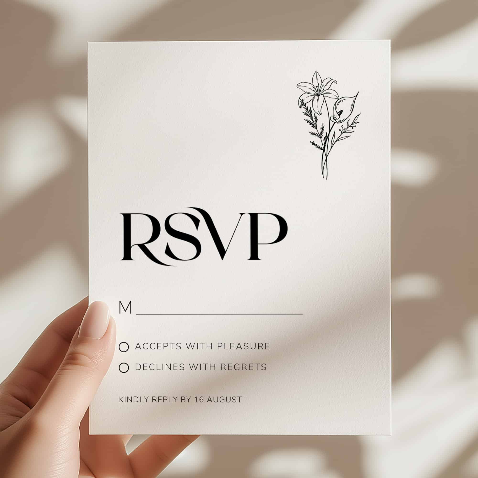 Includes accept/decline options and reply date. Orientation (horizontal or vertical) varies by design.