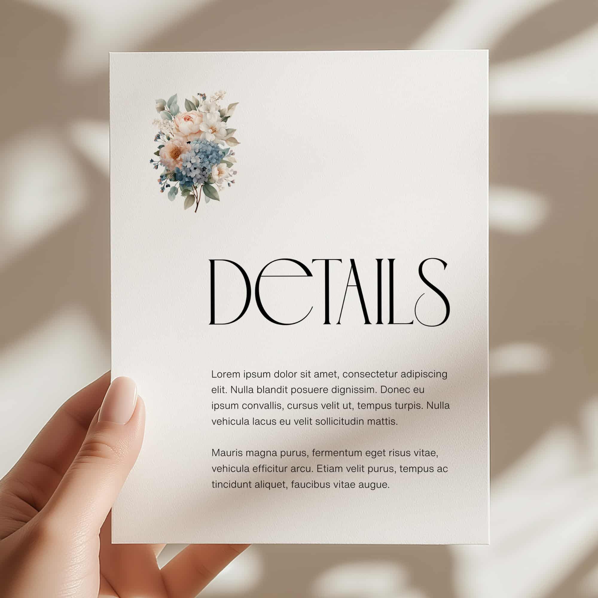 Ideal for accommodations, reception details, directions, or wedding website information. Orientation varies by collection layout.
