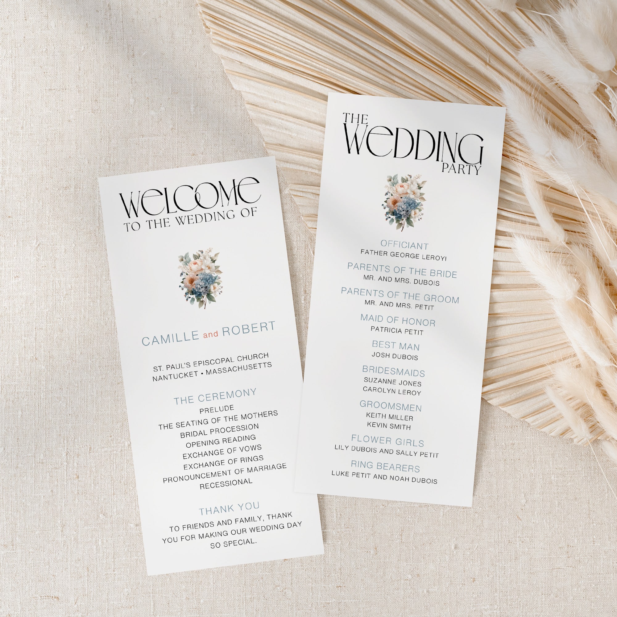 Coastal wedding invitation templates in the Coastal Collection are designed to create a cohesive, elevated stationery suite from your first announcement through your wedding day details. Inspired by breezy celebrations and understated elegance, this collection blends soft botanical artwork, airy color palettes, and clean modern typography for a look that feels both timeless and relaxed.