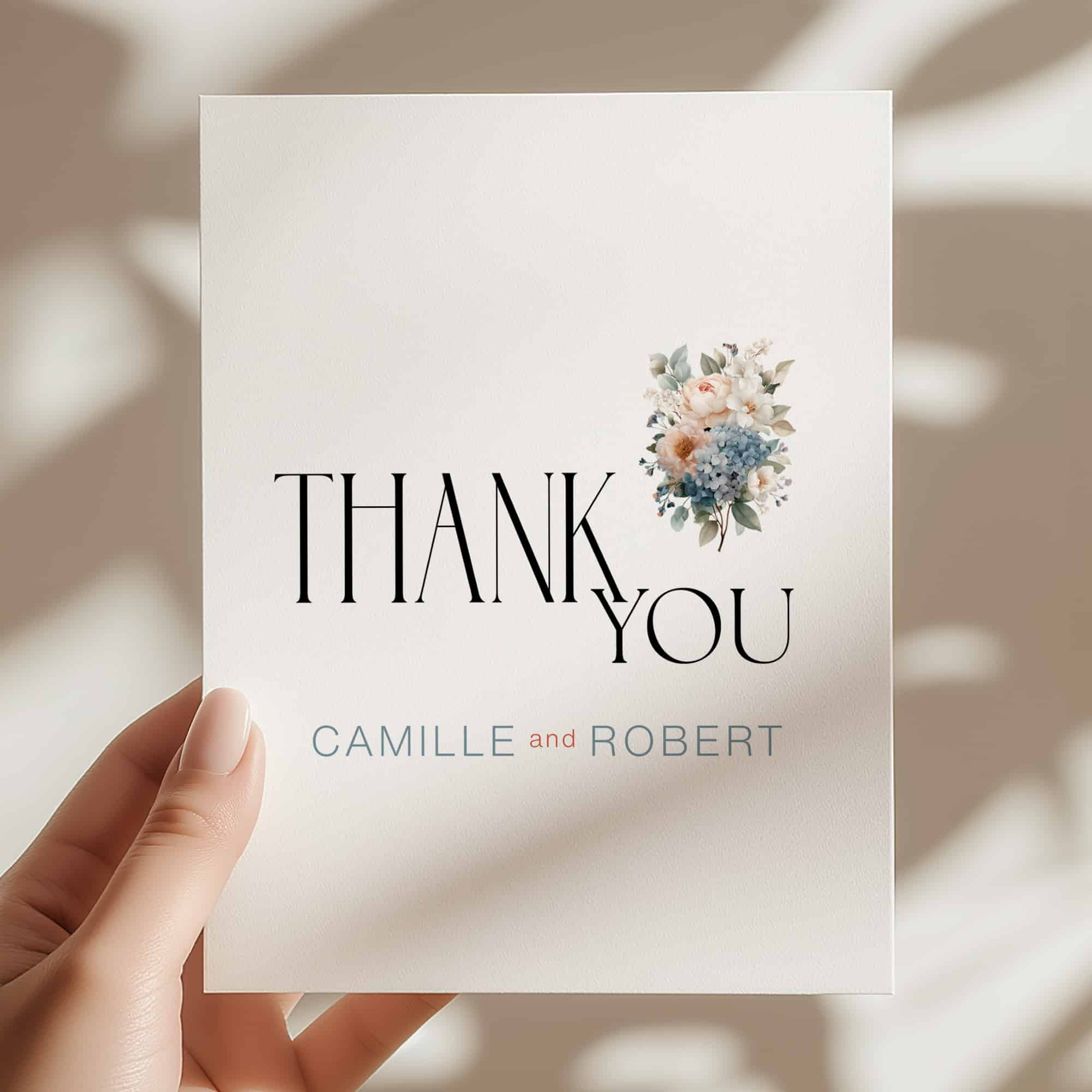 A coordinating card to express gratitude after your wedding. Orientation varies by design.