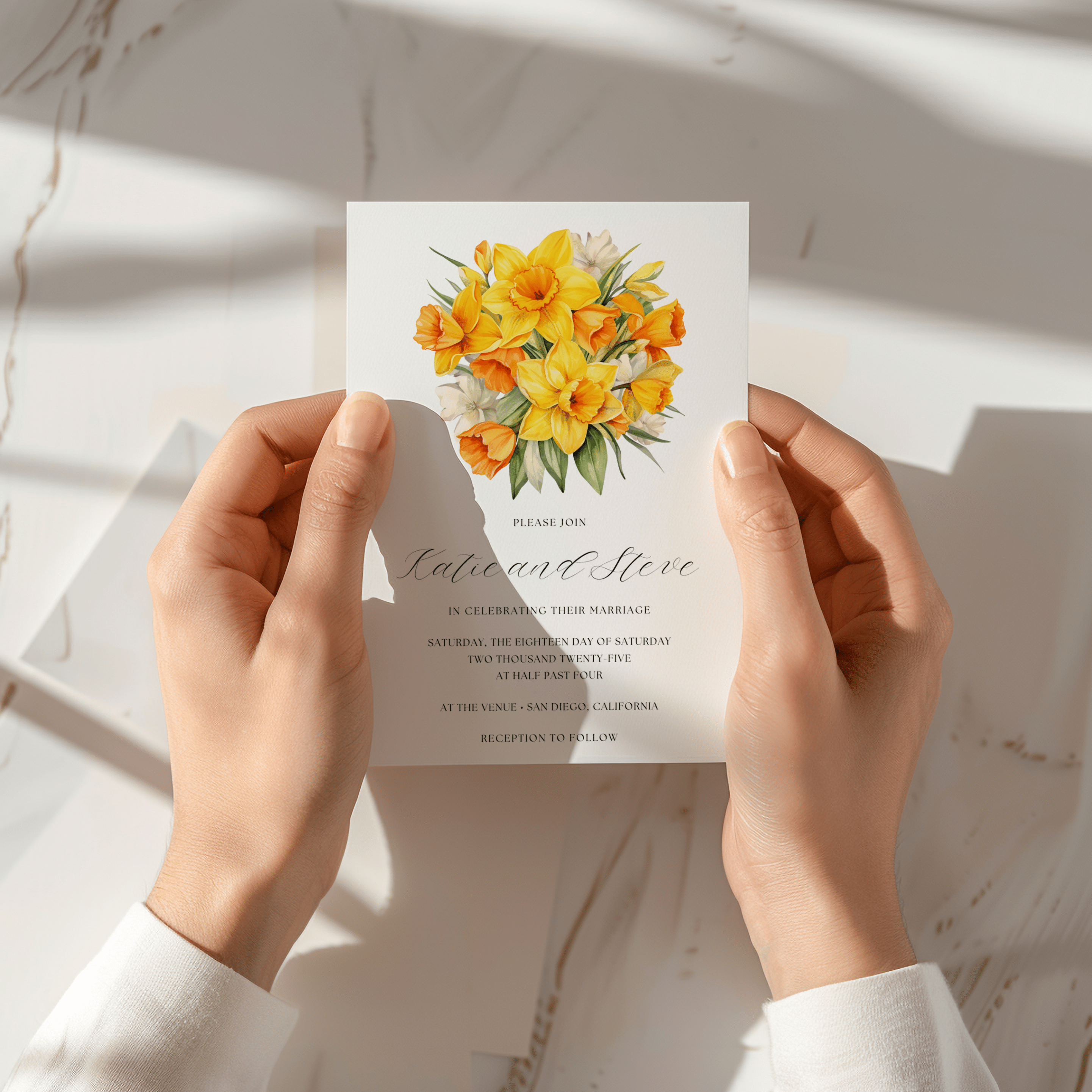 This template was perfect and fits with our spring daffodil wedding beautifully. We’ve only printed the save the dates so far, but we got a lot of compliments on how beautiful they were.