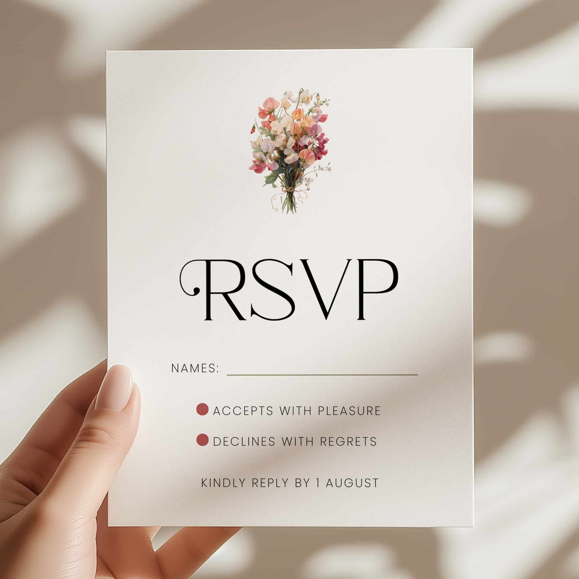 Includes accept/decline options and reply date. Orientation (horizontal or vertical) varies by design.