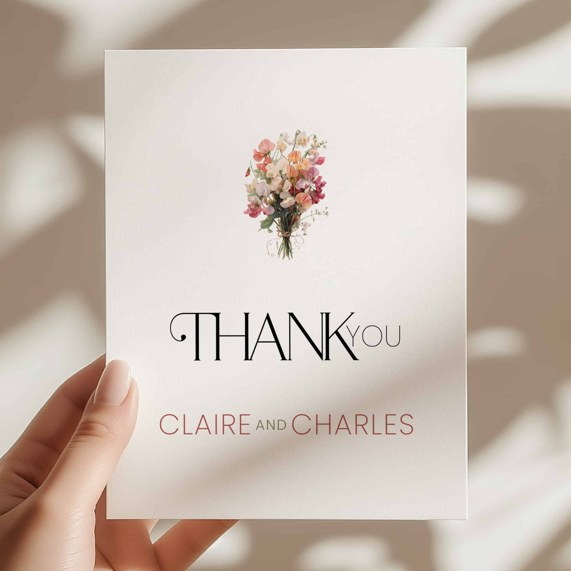 A coordinating card to express gratitude after your wedding. Orientation varies by design.