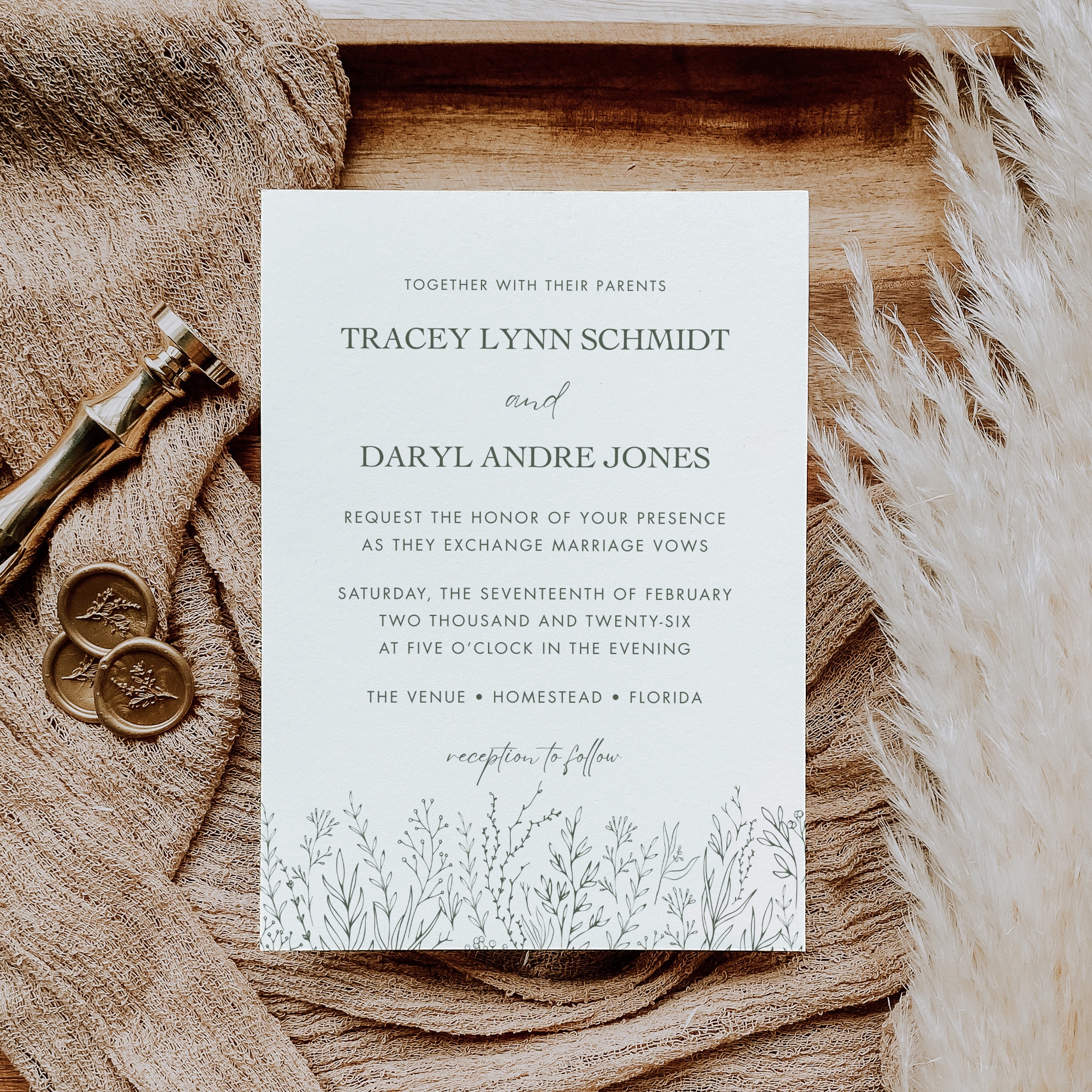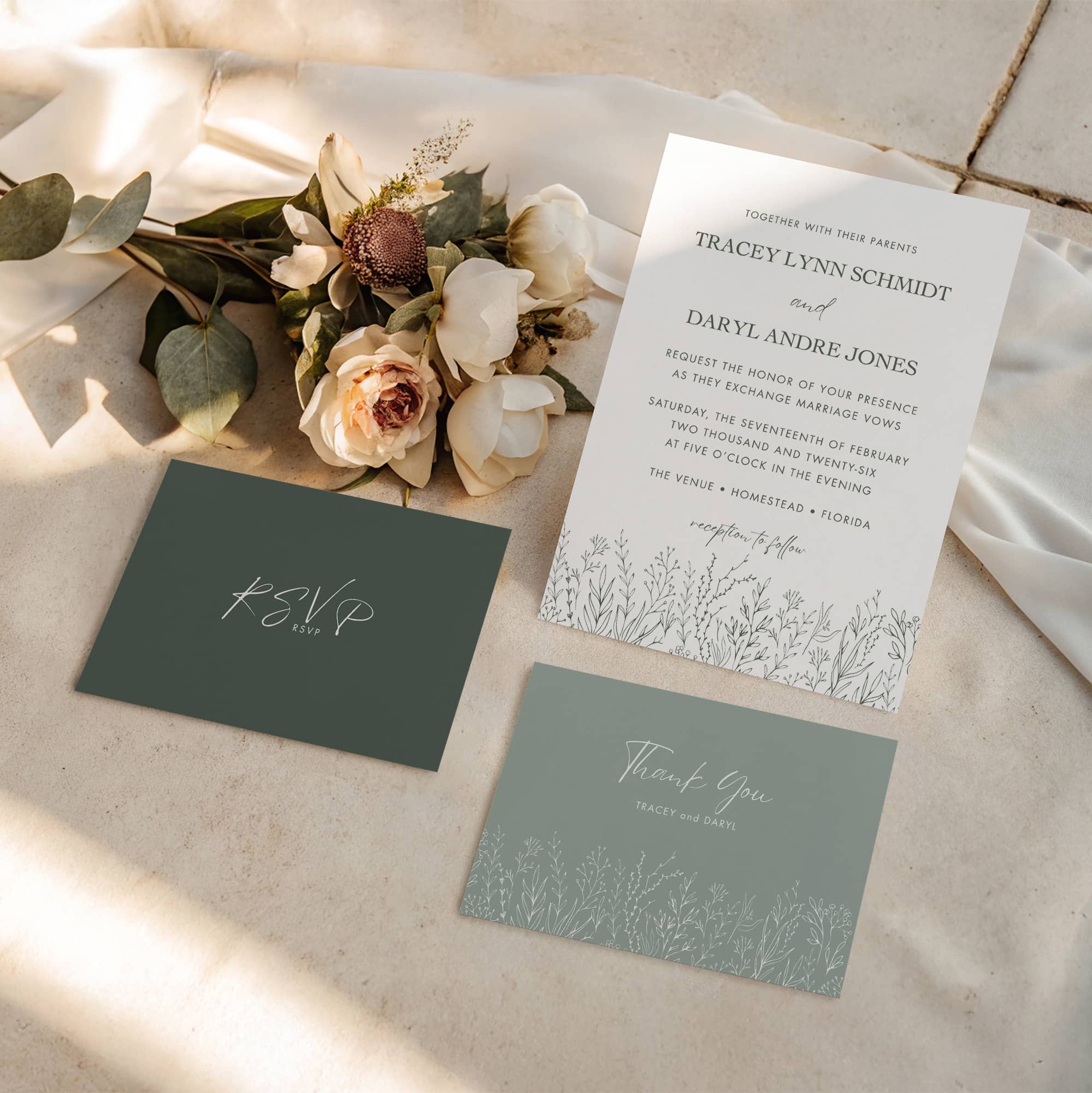Sage Green Botanical Wedding Invitation Bundle | Editable Canva Templates