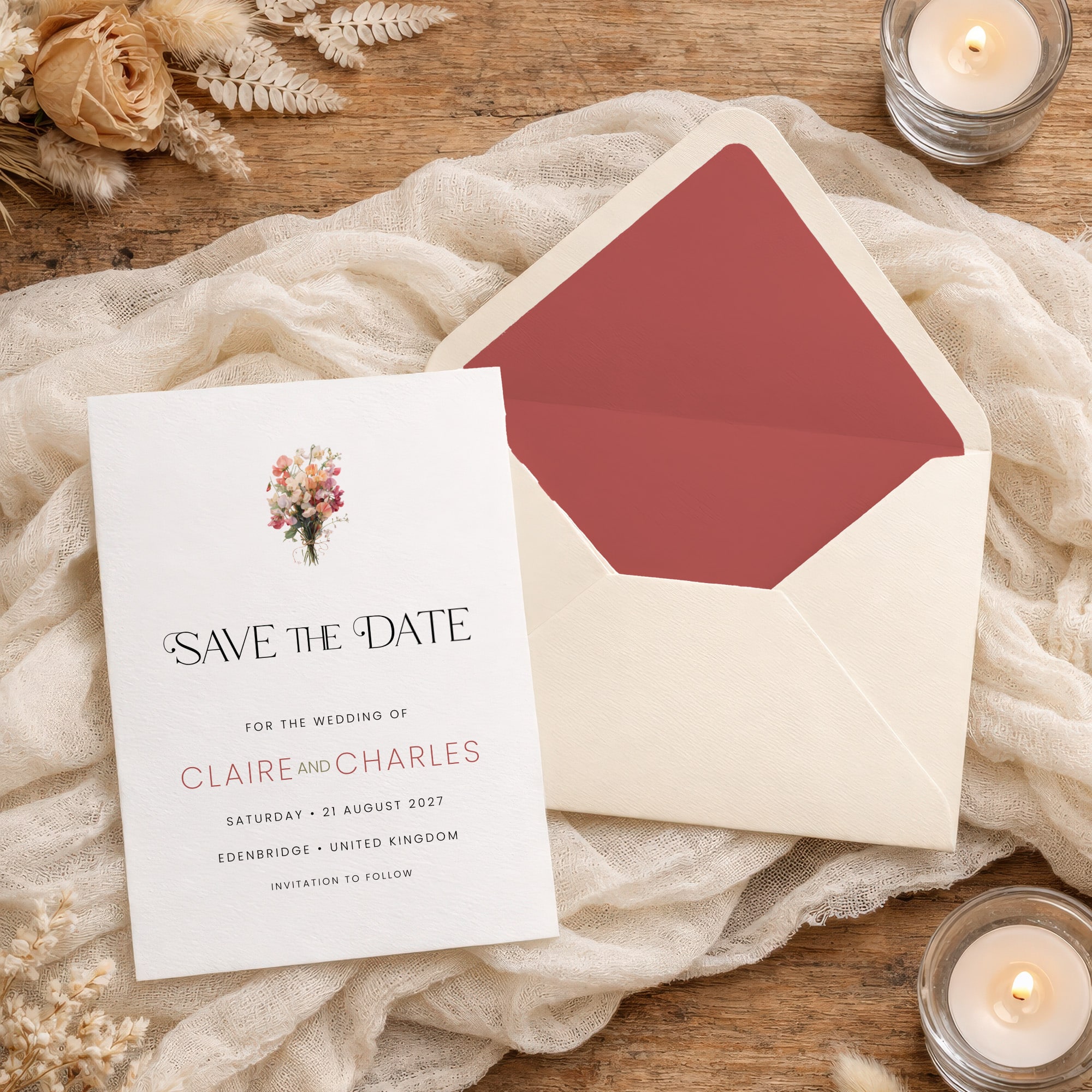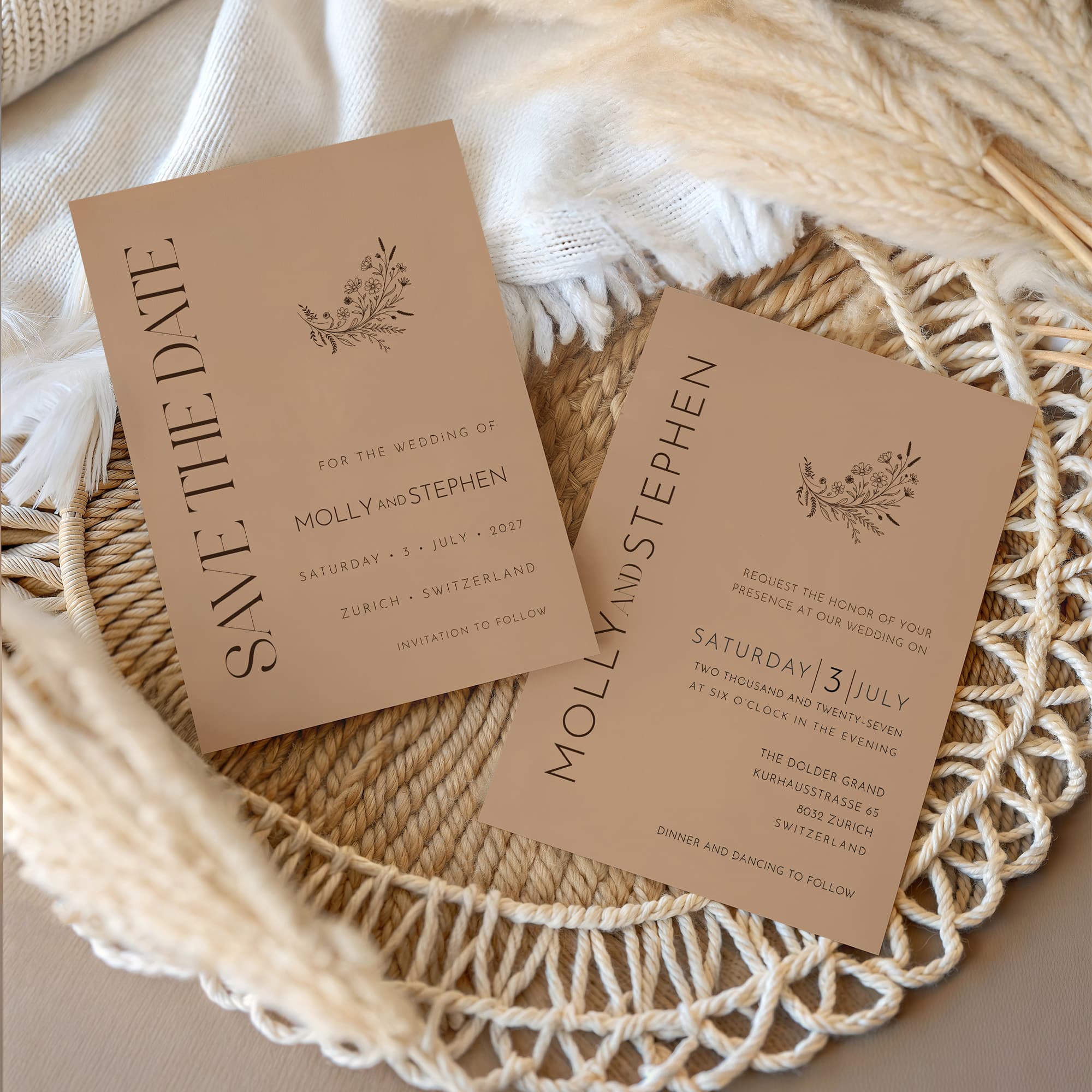 Each collection is built as a complete visual language. Every piece works together seamlessly, from Save the Date through Wedding Weekend materials.
